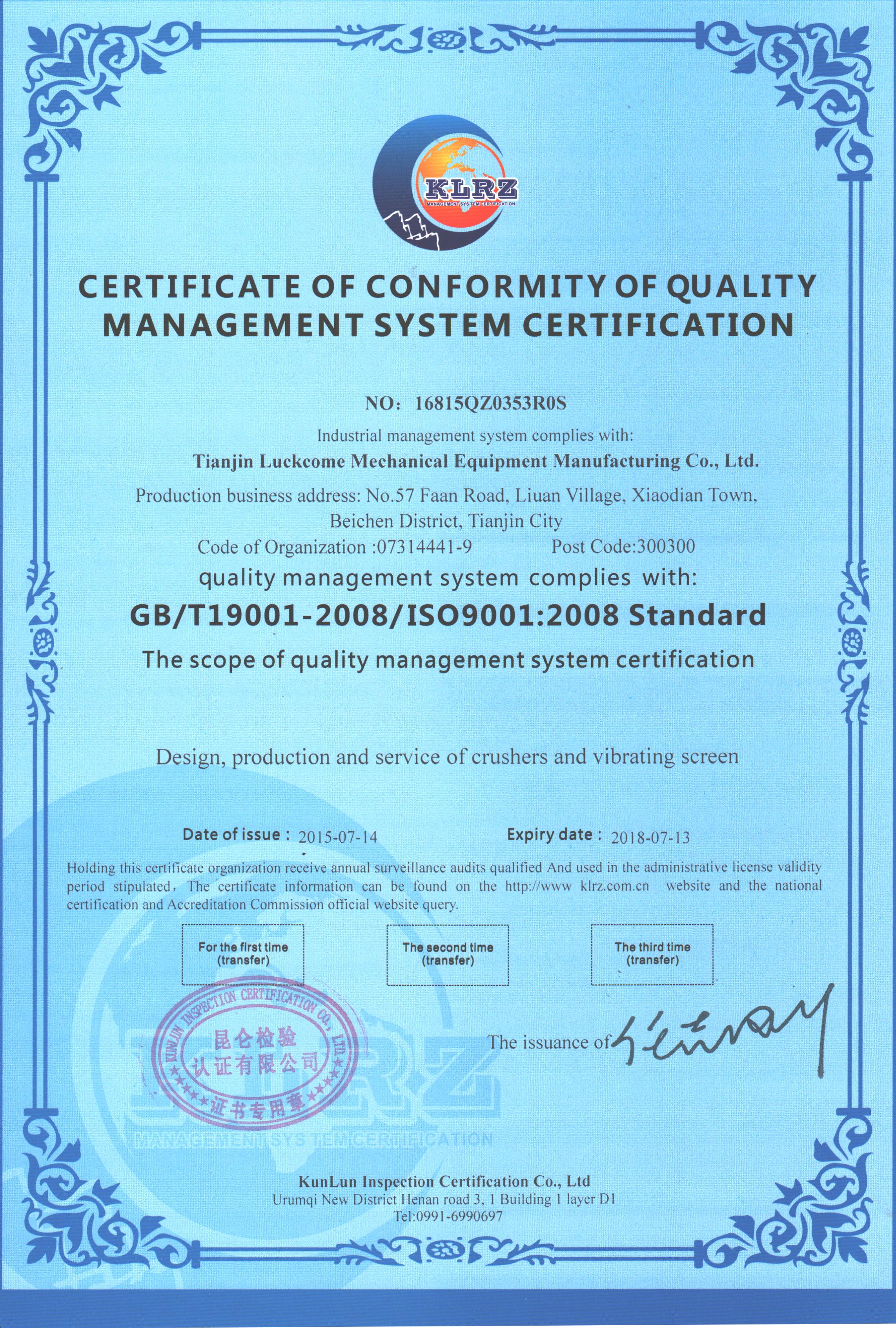 2015-07-28 2015年7月3日,中質(zhì)協(xié)質(zhì)量保證中心的兩位專家蒞臨我公司,對我公司質(zhì)量管理體系認證進行現(xiàn)場評審 . 經(jīng)過專家組的認真審核,我公司各項審核項目均達到了ISO9000質(zhì)量管理體系規(guī)定標準,順利通過此次質(zhì)量管理體系評審。我們在今后的工作中要一如既往的嚴格執(zhí)行質(zhì)量管理體系及規(guī)章制度,嚴格按照標準進行生產(chǎn)作業(yè),持續(xù)提高產(chǎn)品質(zhì)量,為煤礦行業(yè)提供高質(zhì)量的產(chǎn)品和服務!